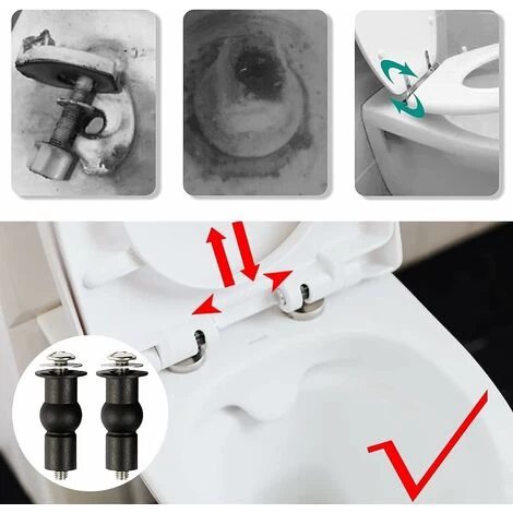 Product Inclusion: You will receive a set of 4 pairs of toilet seat fixing bolts, including 8 black rubber pipe nuts, 8 bolts and 8 metal washers for your daily items.