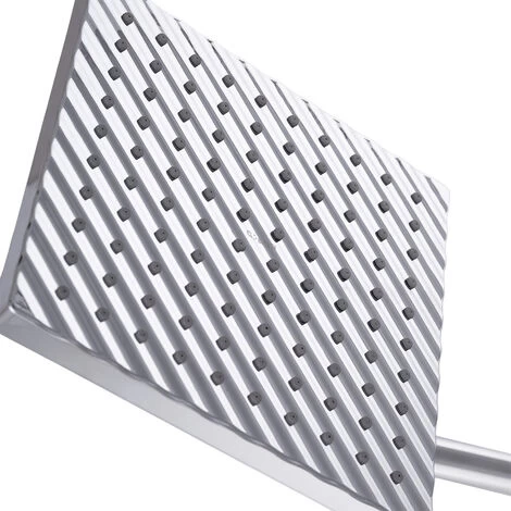 Shower head in chrome finish with rain effect jet. It has silicone-based spikes that make it easy to clean the sprayer, preventing limescale from accumulating. Rainwater consumption at 3 bars is 24 l/min.