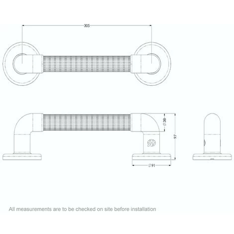 32mm in diameter, this grab rail comes with the option of 5 fixing points for safe and secure wall fixing, with a rail to wall clearance of 59mm, for easy access.