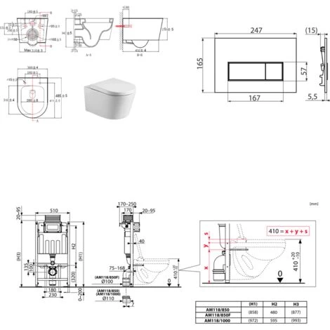 - For installation of suspended toilet bowls with a connection pitch of 180 mm or 230 mm