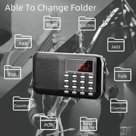 [Convenient to Carry] It is also comes with a gray strap, you can carry it anywhere. Overall, it’s a tiny companion, suitable for indoor use and outdoor activities. [Easy To Use] 1) Just use one button to automatically search, store and number all nearby radio stations. (Note: No function of memorizing and manually numbering stations). 2) Through a USB cable, you can use DC5V / 500mA -2A USB adapter, computer, car or portable battery to charge it. Searching for radio stations and reloading couldn’t be easier! [Perfect Music Experience] 1) Support TF card / USB flash drive (0-64GB). This means it has additional MP3 functions. 2) Equipped with built-in 3W high-quality electromagnetic speakers, which can ensure heavy bass and smooth and reliable treble, and supports headphones via 3.5mm jack. (The product does not include headphones). Trust us, you will fall in love with the sound as soon as you listen to the radio. [Radio Emergency Light] It’s easy to turn on the LED light with just one swipe you don’t. don’t need to press and hold the LED button all the time. Also, you can turn off the LED light with just one tap. The radio light is also suitable for workshops, garages, earthquakes, floods, camping, night activities or power outages.Color: Black