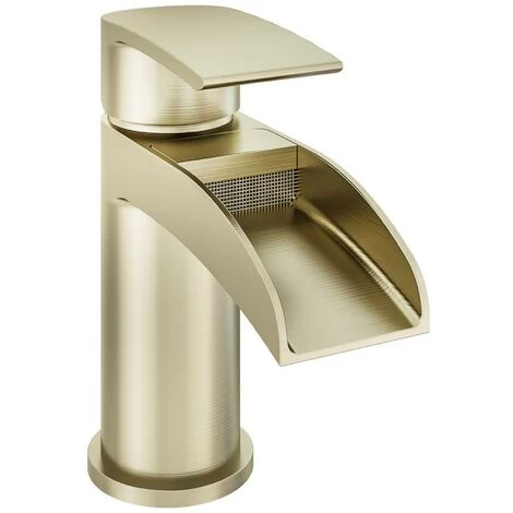 Aquarius Niagara Waterfall Basin Mono Tap inc Waste Brushed Brass AQ791016