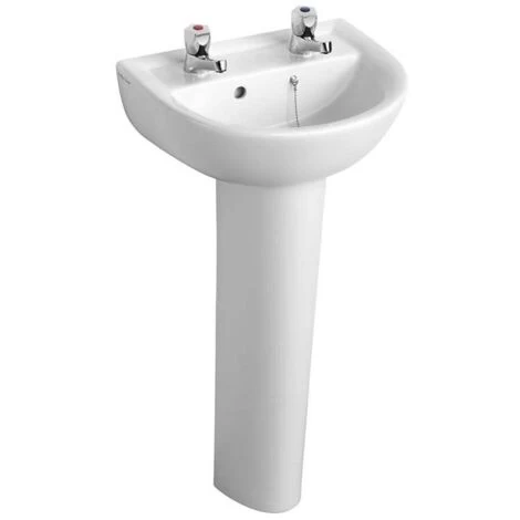The Armitage Shanks Sandringham 21 Basin and Full Pedestal, 450mm Wide, 2 Tap Hole good for combining looks with for all your space saving needs. This basin has been created with a sleek modern touch and style, transforming any bathroom into an even more luxurious and stylish space to be in. You can be assured that you are receiving an item of the highest quality, this model comes with a lifetime guarantee from the manufacturer.
