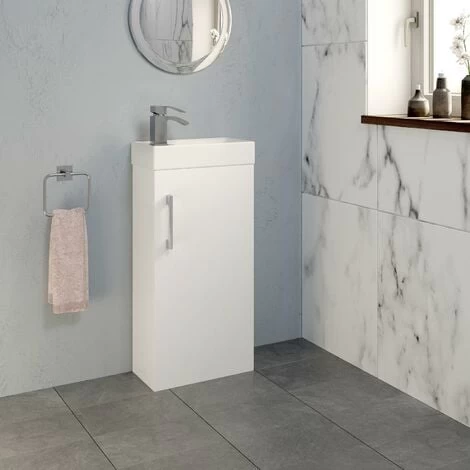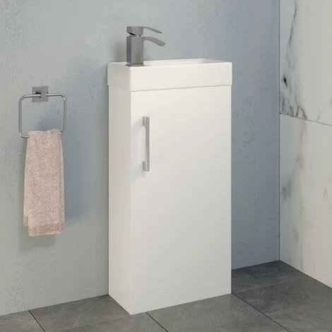 Vanity unit bundleThis stylish white gloss cloakroom vanity unit comes complete with a ceramic basin, chrome basin mixer tap, and a pop-up waste. The compact size of the vanity unit makes it an excellent space saver. Ideal for an en-suite or cloakroom, or just to save important floor space in your bathroom, the unit comes complete with practical storage shelves inside. |