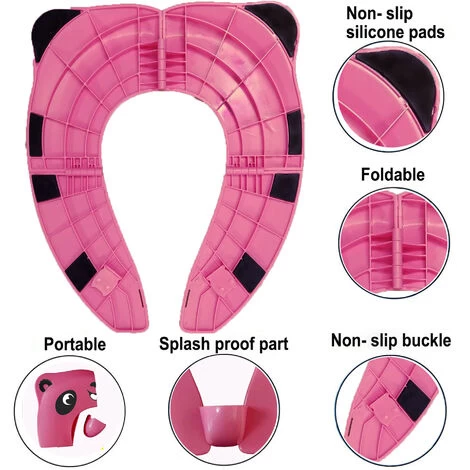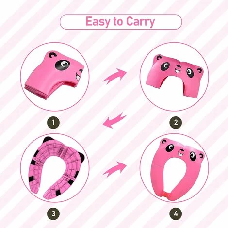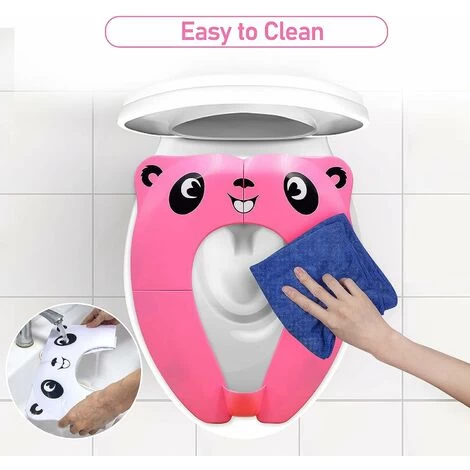 of space where the potty seat for kids folds, so you can rest assured the seat won’t pinch your little one’s bottom! - γSpecial Design for KidsγWith cheerful colors and cute panda print, the collapsible potty seat brings fun to your kids. Your kids can go to the toilet on their own, help them become more independent, great for