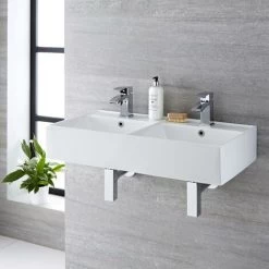 Milano Dalton – Modern White Ceramic Bathroom Basin Sink With Chrome Washstand – 400mm X 400mm