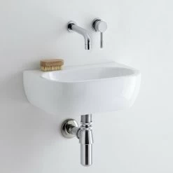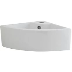 Milano Newby – Modern 460mm X 320mm White Ceramic Wall Hung Corner Bathroom Basin Sink – Basin Only