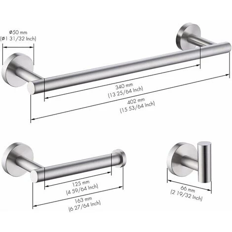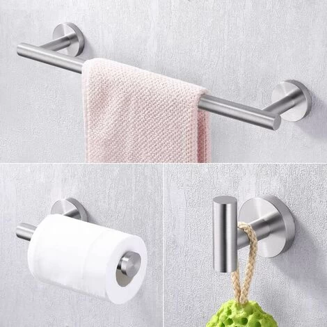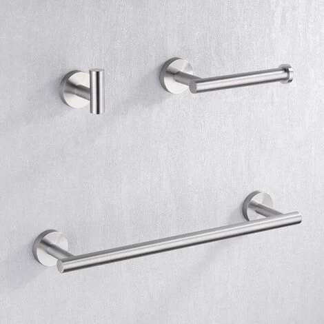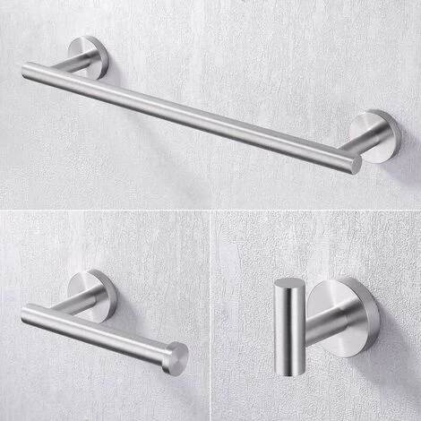 - 3-PIECES BATHROOM FIXTURE SET: Package includes 15 53/64 Hand Towel Rail, Toilet-roll Holder, Robe Towel Hook, Hardware Pack (for screw-mount) and Installation Instructions.