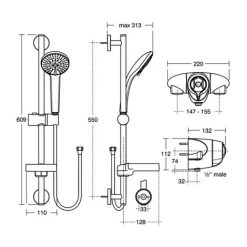 Ideal Standard CTV Thermostatic Exposed Shower Mixer Slide Rail Kit – Chrome