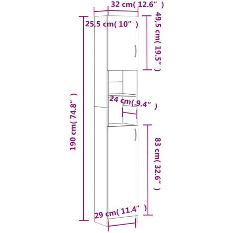 - Dimensions: 32 x 25.5 x 190 cm (W x D x H)