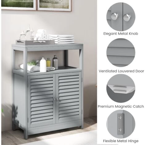 Are you worried about having nowhere to put your private items in your bathroom? Our freestanding cabinet is an ideal solution to facilitate your life. Crafted of high-quality MDF and engineered wood, the bathroom cabinet ensures good strength and durability. With an open shelf and a large cabinet, you can store various items to make your space tidy. And the shelf in the cabinet can be adjusted with 3 positions, which is suitable for objects of different heights. Shutter doors combine practicality with aesthetics to match the style of other home furniture. It is widely used in bathroom, living room, bedroom and hallway.