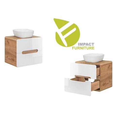 Includes: 60cm Vanity Unit with two drawers – Size: 53 cm (H); 60 cm (W); 45.5 cm (D).