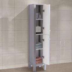 1200mm Grey High Cabinet Wall Mounted Cupboard Tall Bathroom Storage Unit
