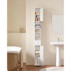 SoBuy White Bathroom Cabinet Bathroom Shelf Bathroom Tall Cabinet Cupboard,BZR34-W