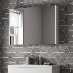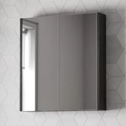 Aurora 600mm Bathroom Mirror Cabinet 2 Door Storage Cupboard Wall Mounted Charcoal Grey