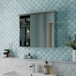 Aurora 900mm Bathroom Mirror Cabinet Three Door Cupboard Wall Hung White