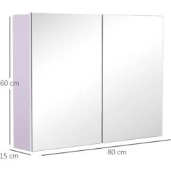 HOMCOM Wall Mounted Mirror Cabinet Storage Cupboard Shelf Bathroom Double Door 60Wx15Dx75H (cm)
