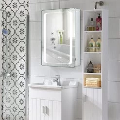 Livingandhome Rectangular Wall Mount Mirror Cabinet With LED Light