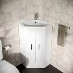 Zeller 550mm Floor Standing Corner Unit And Ceramic Basin Alpine Gloss White