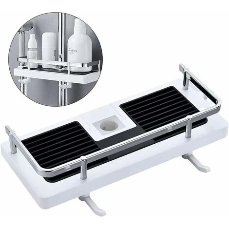 - ✨【High quality ABS material】 The upgraded elevatable tray frame is made of ABS material, which has better moisture resistance, and is suitable for wet environments and durable. The hollow design makes the drainage more convenient, makes the shower supplies dry quickly, and keeps the shower area clean and sanitary.