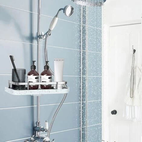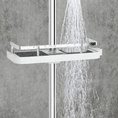 RELIABLE MATERIAL: This shower shelf made of high quality ABS plastic and solid durable aluminum is environmental, rust free and durable.shower holder for shampoo can be adjusted for individual request. The max load bears 15kg.