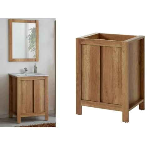 Bathroom Vanity Unit 600mm Floor Standing 60cm Sink Cabinet Oak Effect Classic