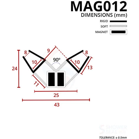This pair of shower seals are comprised of a high quality rigid PVC U section designed to comfortably grip any glass ranging from 8mm to 10mm thick with no need for any additional adhesive. They also includes a magnetic strip covered in a white plastic to match the rest of your enclosure, these will hold the door shut when showering although are still easy enough to open once finished.