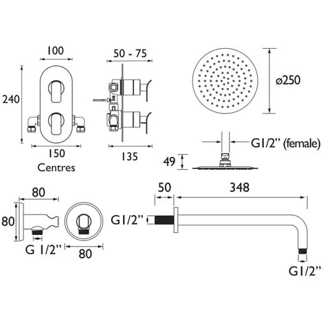 - Supplied complete with Dual Concealed Valve, Fixed Shower Head with Shower Arm and Shower Handset with Hose