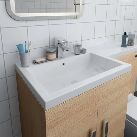 The Left Hand Light Oak Combi Vanity Unit Set with Toilet adds an elegant and contemporary touch to your bathroom. Complete with a Back to Wall Unit and Toilet the Calm Light Oak Combi Vanity Unit is the perfect addition to any bathroom.