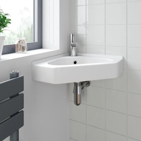 The single hole for the tap is located in the right-angle which fits into the corner of the bathroom and the overflow is situated just beneath. With so many different monobloc tap options to choose from, this basin does not come with the tap included enabling you can to pick one that suits your taste or matches your other bathroom fixtures.