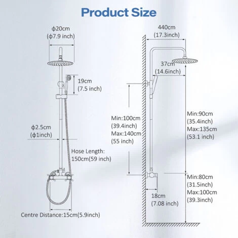 2.【Ensemble de douche】pommeau de douche de tuyau de douche en de 150 cm, la douche à effet pluie couvre tout votre corps et peut facilement masser votre cuir chevelu. La conception unique de la douche de pluie à haute pression permet d’économiser beaucoup