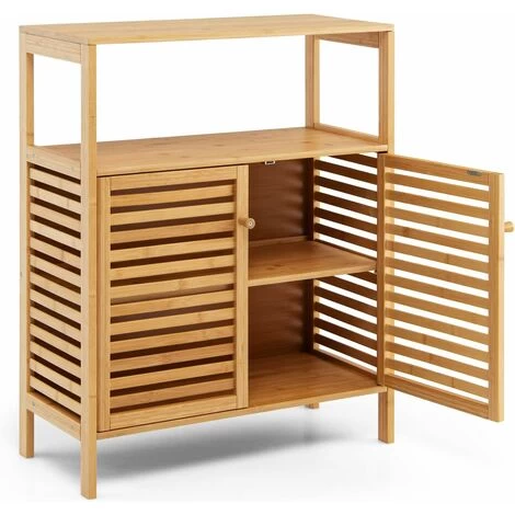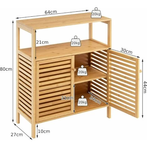 Are you bothered by messy bathroom? This bamboo bathroom storage cabinet is a good solution! Made of solid bamboo frame, this bathroom cabinet is durable and stable to stand the test of time. The smooth and waterproof surface not only makes daily cleaning much easier, but also ensures long-lasting use in the bathroom. The large storage space with a removable shelf can fulfill all your organization wishes. Therefore, this multifunctional bamboo storage organizer combining practicability and aesthetics in the design is an ideal addition to your bathroom, kitchen, dining room, living room and entryway.