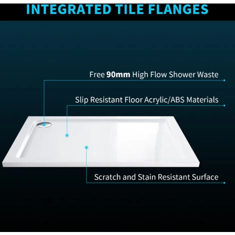 900 x 800 x 40mm Rectangular shower tray (W x D x H)