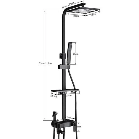 Black Manual Shower Column 3-function Showerhead With Round Sliding Rainfall