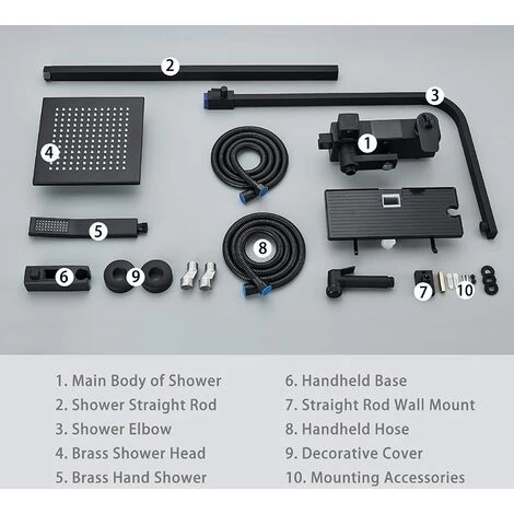 [nouveau paquet] 100% nouveau paquet. Quelles que soient vos questions, n’hésitez pas à envoyer un e – mail au vendeur, qui vous répondra dans les 24 heures (il y aura des retards pendant les vacances). [conception de thermostat numérique] lorsque l’eau froide est coupée, la vanne thermostatique peut empêcher les changements soudains de température et les brûlures d’eau chaude. Le contrôle de température correct est équipé d’un bouton de sécurité 40 ℃, notre température de l’eau est plus chaude et plus confortable que les autres vannes thermostatiques 38 ℃. Et la température de l’eau peut être surveillée à tout moment sur l’écran LCD. [douche multifonction] un bouton commande quatre types de fonctions de commutation de l’eau, y compris une douche pluvieuse et une douche à main à trois fonctions, un bec de baignoire et un pistolet avec un tuyau de 150CM. [fabriqué avec soin] bobine en céramique de haute qualité, bonne étanchéité, aucune fuite, aucun bruit, détection 500 000 fois. (le produit reçu peut avoir encore de l’eau lors de l’essai de l’eau, soyez assuré de l’utiliser. Si vous avez des questions, vous pouvez envoyer un e – mail au vendeur.) [service et garantie] 1 / 2 tuyau standard fileté, accessoires d’installation complets, Service de garantie de 5 ans (si l’interface de conduite d’eau ne convient pas ou si le produit est défectueux et endommagé, veuillez envoyer un e – mail au vendeur, qui renverra l’interface appropriée et le nouveau produit.)