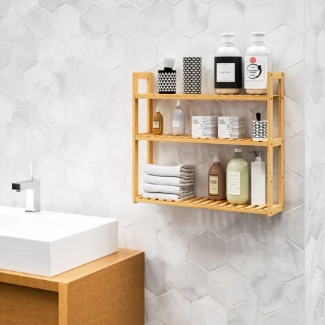 The shelf can be used both as a space-saving wall shelf and as a freestanding bathroom shelf. It is also ideal as a shoe shelf, kitchen shelf or basement shelf and much more.