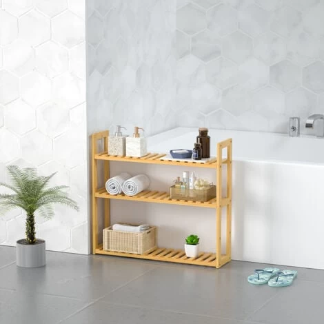 The robust shelf made of sustainable and environmentally friendly bamboo can withstand loads of up to 30 kg. The shelves can bear up to 10 kg each. Thanks to this high load capacity, you can place even larger objects on it without any problems. This shelf is covered with a clear lacquer and is therefore very suitable for rooms with a certain humidity.