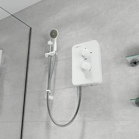 Pressure stabilised temperature control alters the outlet temperature by increasing or reducing the flow rate of water through the shower.