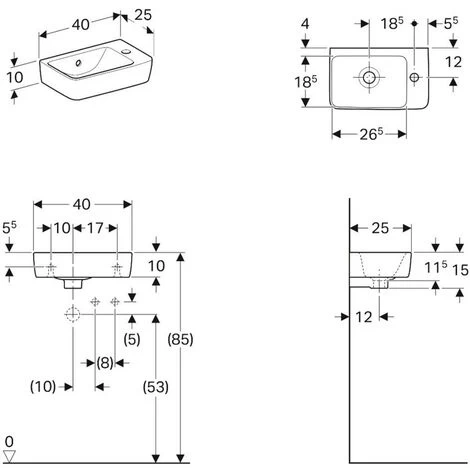 Features of the Selnova Wash basin 40×25 cm, right-hand hole, White (501.517.00.1):