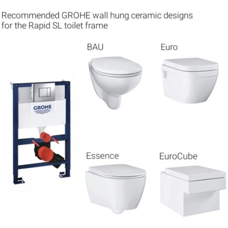 The Rapid SL Low Noise 3 in 1 Set Support Frame for Wall Hung WC gives you the freedom to design your ultimate bathroom by providing a secure and quick method of installing WCs. Complete with the Skate Cosmopolitan chrome flush plate, it features GROHE Whisper®, preventing any sound from traveling to adjoining rooms while GROHE EcoJoy® flush technology reduces your water consumption by up to 50%. The dual flush system provides two buttons, allowing you to select a flush volume of either 3 or 6 liters (or 3 and 4.5 liters, depending on the ceramic body). Each frame comes pre-assembled with sanitary ware fixings and is subject to stringent testing – Grohe WC frames are tested to hold 400kg.