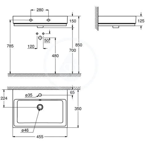 Ceramic cube Hand-washing basin, 455×350 mm, PureGuard, alpine white (3948300H):