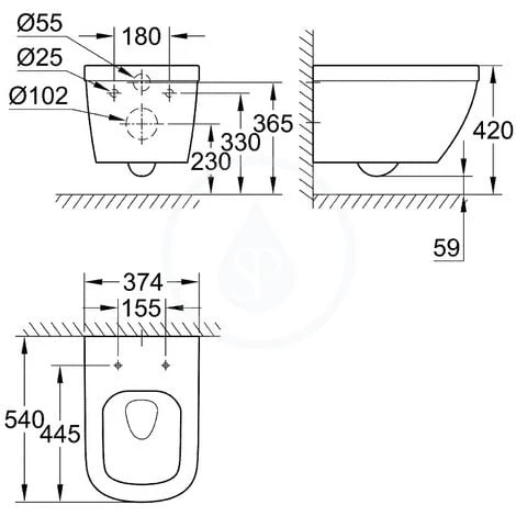 Features of the Euro Ceramic Wall mounted toilet bowl, alpine white (39328000) :