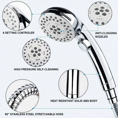 cleaning, hair and skin care. - HIGH QUALITY MATERIALS: Durable chrome ABS material, adjustable solid brass swivel ball joint and stainless steel hose make the high pressure shower head light, high strength and rustproof. Anti-clogging silicone jets