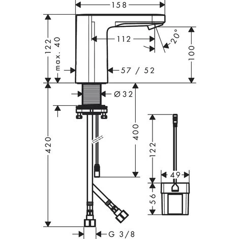 • battery operation 6 V Lithium-battery, type CR-P2 (lifetime approx. 7 years, at 150 actuations per day, battery included in scope of supply)