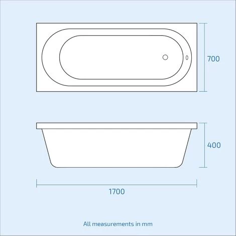 - 170 Litres Tap mounting – End of bath (above overflow)