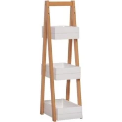 • 3-Tier natural woody material rack with lots of storage space suitable for toiletries, towels, sundries, etc