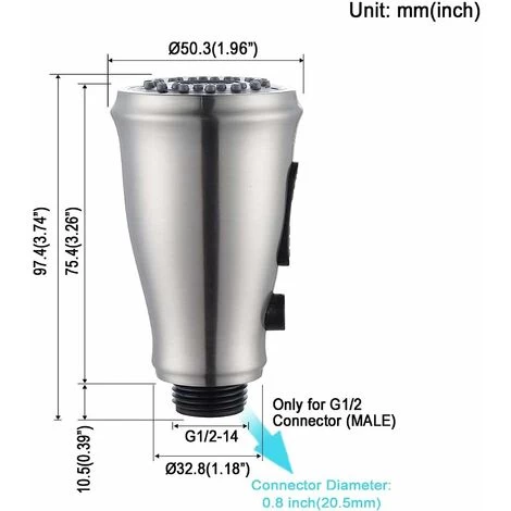 Standard Connection: The male connection is G1/2 Connector which is is designed for a standard type of pull out hose and suitable for most faucets.