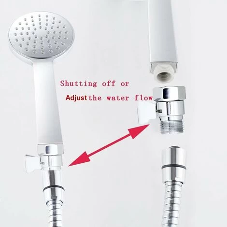 - This water-saving shut-off valve, installed between the shower head and the shower arm to control the water flow
