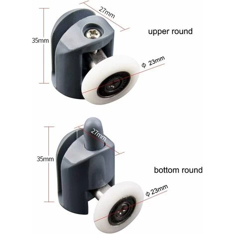 - 8 Piece Shower Door Rollers Single Wheels, includes 4 top rollers and 4 bottom rollers. Good for replacement shower door rollers.