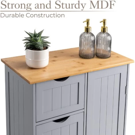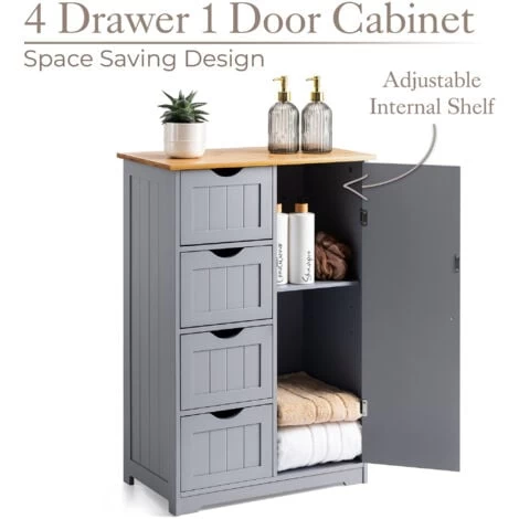 Perfect for bathrooms big or small, this Grey 4 Drawer Bathroom Cabinet from Christow features four drawers and a cupboard with two internal shelves for your essentials. Plus, it has a stylish grey finish with a bamboo top to add a beautiful, natural look to any room.
